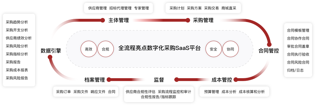 互联网+覆盖采购全流程,协同每个角色及节点,平台快速响应业务变化